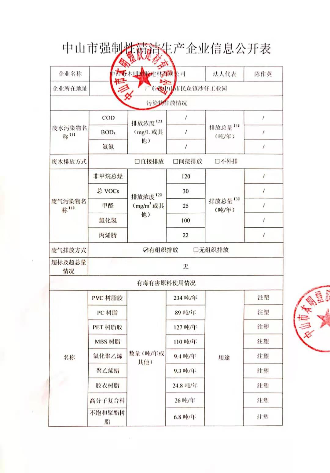 根据中山市工业和信息化局和中山市生态环境局《关于中山市2020年第二批应依法实施清洁生产审核企业名单的通知》(中工信【2020】243号),中山市本明塑胶建材有限公司被列入2020年中山市第二批强制性清洁生产审核重点企业名单。我单位已正式启动清洁生产工作,现向公众公示我单位的相关信息,请社会各界对我单位进行监督。一、企业基本情况